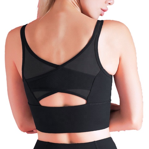Ksy נשים חלקה ספורט חזיית השפעה גבוהה רשת openwork אימון מוצק ריצה יבול צמרות חלול החוצה חזייה יוגה