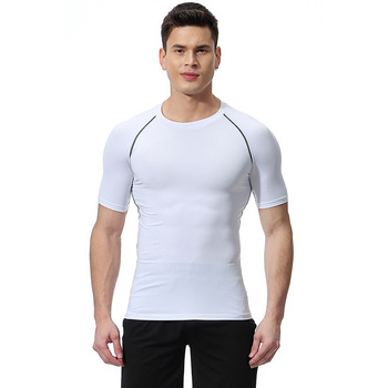 เสื้อผ้าออกกำลังกายของผู้ชายเสื้อยืดแขนสั้นระบายอากาศได้ดีมีความยืดหยุ่นสูงสำหรับฤดูร้อน