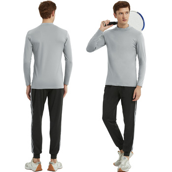 ชุดฟิตเนสสำหรับผู้ชาย, ชุดวิ่งคอตั้งแห้งเร็วคอสูงสำหรับฤดูใบไม้ผลิและฤดูร้อนชุดกีฬาออกกำลังกายสองชิ้น